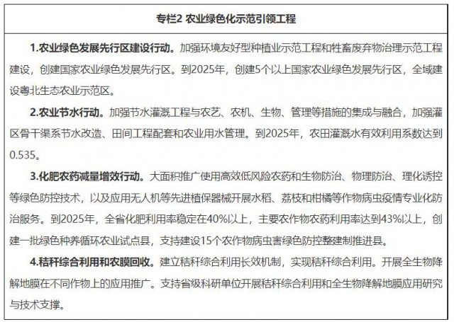 5.推廣農(nóng)業(yè)清潔生產(chǎn)新模式。落實百縣千鎮(zhèn)萬村高質(zhì)量發(fā)展各項要求,加快推進農(nóng)業(yè)清潔生產(chǎn)。加快構(gòu)建種植業(yè)、畜禽養(yǎng)殖業(yè)、水產(chǎn)養(yǎng)殖業(yè)清潔生產(chǎn)技術(shù)體系,實施糧經(jīng)飼統(tǒng)籌、種養(yǎng)加結(jié)合、農(nóng)林牧漁融合發(fā)展等一體化發(fā)展模式。支持我省預(yù)制菜產(chǎn)業(yè)高質(zhì)量發(fā)展。大力發(fā)展綠色低碳循環(huán)農(nóng)業(yè),推進農(nóng)光互補、“光伏+設(shè)施農(nóng)業(yè)”、“海上風(fēng)電+海洋牧場”等低碳農(nóng)業(yè)模式。增加農(nóng)村清潔能源供應(yīng),推動農(nóng)村生物質(zhì)能綜合利用。發(fā)展林業(yè)循環(huán)經(jīng)濟,培育林業(yè)龍頭企業(yè),建設(shè)林草中藥材、油茶、竹等具有廣東特色的林業(yè)產(chǎn)業(yè)發(fā)展基地,積極創(chuàng)建國家現(xiàn)代林業(yè)產(chǎn)業(yè)示范園區(qū),實施森林生態(tài)標志產(chǎn)品建設(shè)工程。以現(xiàn)代農(nóng)業(yè)產(chǎn)業(yè)園、農(nóng)林業(yè)龍頭企業(yè)等為重點,深入推行農(nóng)業(yè)清潔生產(chǎn),形成一批可推廣、可復(fù)制的典型案例。