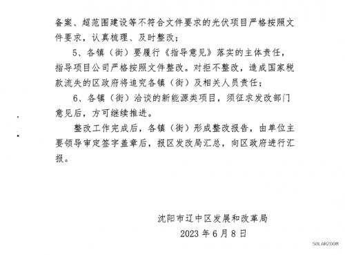 4、各鎮(zhèn)(街)對企業(yè)“化整為零”以自然人身份申請備案、超范圍建設等不符合文件要求的光伏項目嚴格按照文件要求,認真梳理、及時整改;