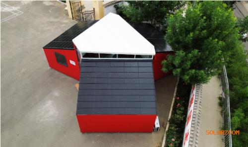 值得一提的是,此次“方寸空間微型幼兒園”為適應(yīng)溫帶半干旱氣候地區(qū)環(huán)境,設(shè)計(jì)聚落型房屋,三個(gè)單坡頂圍合中庭,外圍空間布局幼兒教學(xué)及活動(dòng)空間,中間高聳采光空間成為舞臺(tái),三個(gè)房屋之間設(shè)計(jì)通高玻璃隔斷,其中南面成為主入口,而另外兩個(gè)方向作為通風(fēng)口,中庭不僅作為幼兒很好的展示游樂(lè)場(chǎng)所,也可減少白天刺眼陽(yáng)光與熱量。房屋四面減少窗戶以增強(qiáng)保溫隔熱,中庭設(shè)計(jì)高窗及垂直條形開口,作為主要采光通風(fēng),天氣好時(shí)可將門打開,提供良好通風(fēng)。“方寸空間微型幼兒園”做到了在陽(yáng)光明媚的日子里,光伏瓦屋面提供室內(nèi)外所有的電力需求,用不完的電能自動(dòng)進(jìn)入儲(chǔ)能電池供應(yīng)陰雨天和夜間照明及電器用電。“方寸空間微型幼兒園”屋面采用可完全替代傳統(tǒng)瓦片的光伏瓦片,既解決以前光伏板左右搭接處滲漏隱患,又保證光伏瓦片搭接處平整,為學(xué)生們提供更好的學(xué)習(xí)環(huán)境。學(xué)校還可以把用不完的電賣給國(guó)家電網(wǎng),收入可用于進(jìn)一步改善學(xué)校的環(huán)境。