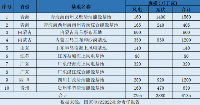 國家電投2022年社會責(zé)任報告顯示,國家電投獲得了十大新能源基地的開發(fā)權(quán),其中包括,內(nèi)蒙古烏蘭布和沙漠基地,規(guī)模共計1200萬千瓦。