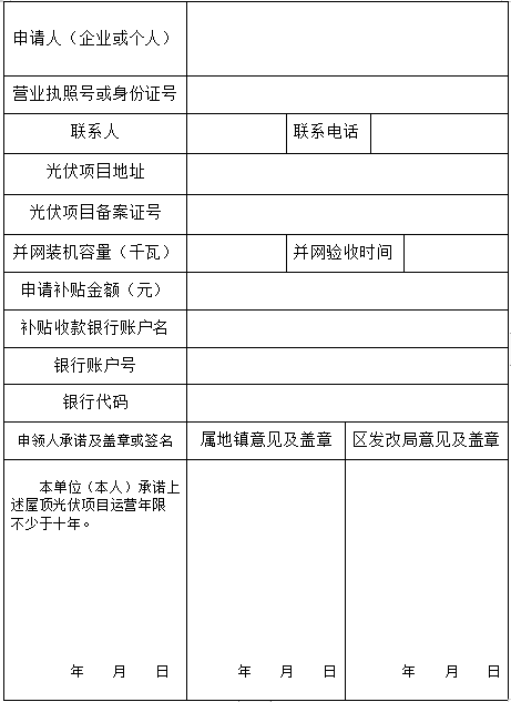 附件:新會區(qū)新建屋頂光伏項目財政補貼申領(lǐng)表