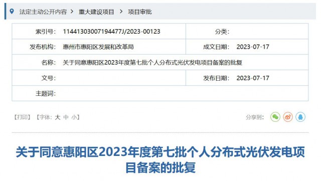 你單位報來《關(guān)于惠陽區(qū)2023年度第七批個人分布式光伏發(fā)電項目申請備案的請示》(惠陽供電〔2023〕90號)收悉。經(jīng)研究,現(xiàn)就項目備案事項批復(fù)如下: