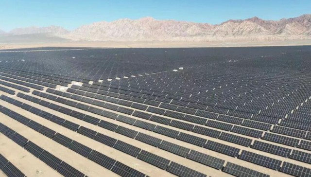 ▲新疆庫車綠氫示范項(xiàng)目光伏廠。
