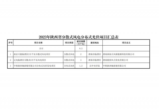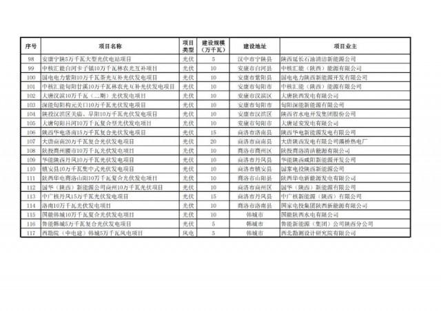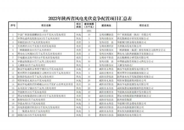 根據(jù)國(guó)家發(fā)展改革委辦公廳、國(guó)家能源局綜合司《關(guān)于2023年可再生能源電力消納責(zé)任權(quán)重及有關(guān)事項(xiàng)的通知》(發(fā)改辦能源〔2023〕569號(hào))和《關(guān)于開(kāi)展陜西省 2023 年風(fēng)電光伏發(fā)電項(xiàng)目開(kāi)發(fā)建設(shè)有關(guān)工作的通知》(陜發(fā)改能新能源〔20 23〕792 號(hào))精神,在各市申報(bào)基礎(chǔ)上,我們組織省級(jí)自然資源、生態(tài)環(huán)境、林業(yè)等職能部門會(huì)審,省級(jí)電網(wǎng)評(píng)分和專家評(píng)審,綜合確定了117個(gè)項(xiàng)目1001萬(wàn)千瓦納入2023年陜西省風(fēng)電、光伏發(fā)電項(xiàng)目保障性并網(wǎng)規(guī)模(其中風(fēng)電73個(gè)604萬(wàn)千瓦,光伏44個(gè)397萬(wàn)千瓦)。