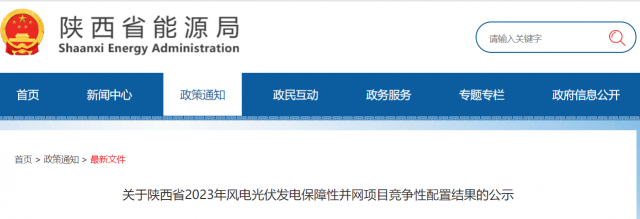 現(xiàn)將2023年陜西省風(fēng)電、光伏發(fā)電保障性并網(wǎng)項(xiàng)目競(jìng)爭(zhēng)性配置結(jié)果進(jìn)行公示。公示時(shí)間為2023年8月25日至2023年8月31日,如有異議,請(qǐng)?jiān)诠酒趦?nèi)以書面實(shí)名反映。
