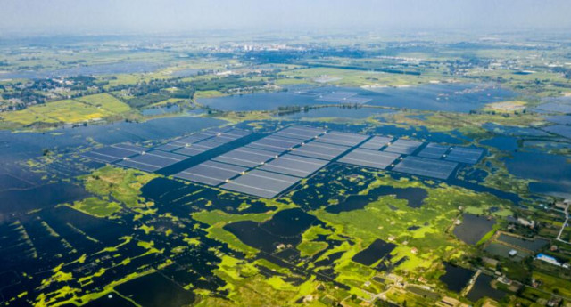 山東省濰坊市壽光市羊口鎮(zhèn)是百年曬鹽之地,這里的鹽堿地改良一直是個(gè)難題。國家電投壽光官臺(tái)營子150兆瓦漁光互補(bǔ)發(fā)電項(xiàng)目通過廢舊低效鹽田水產(chǎn)養(yǎng)殖與光伏發(fā)電相結(jié)合,在水面上方架設(shè)光伏板陣列、板下水域養(yǎng)殖魚蝦,實(shí)現(xiàn)了土地資源的節(jié)約集約高效利用。經(jīng)測(cè)算,該項(xiàng)目每年可提供清潔電能約2.52億千瓦時(shí),替代標(biāo)準(zhǔn)煤7.7萬噸,減排二氧化碳21萬噸。