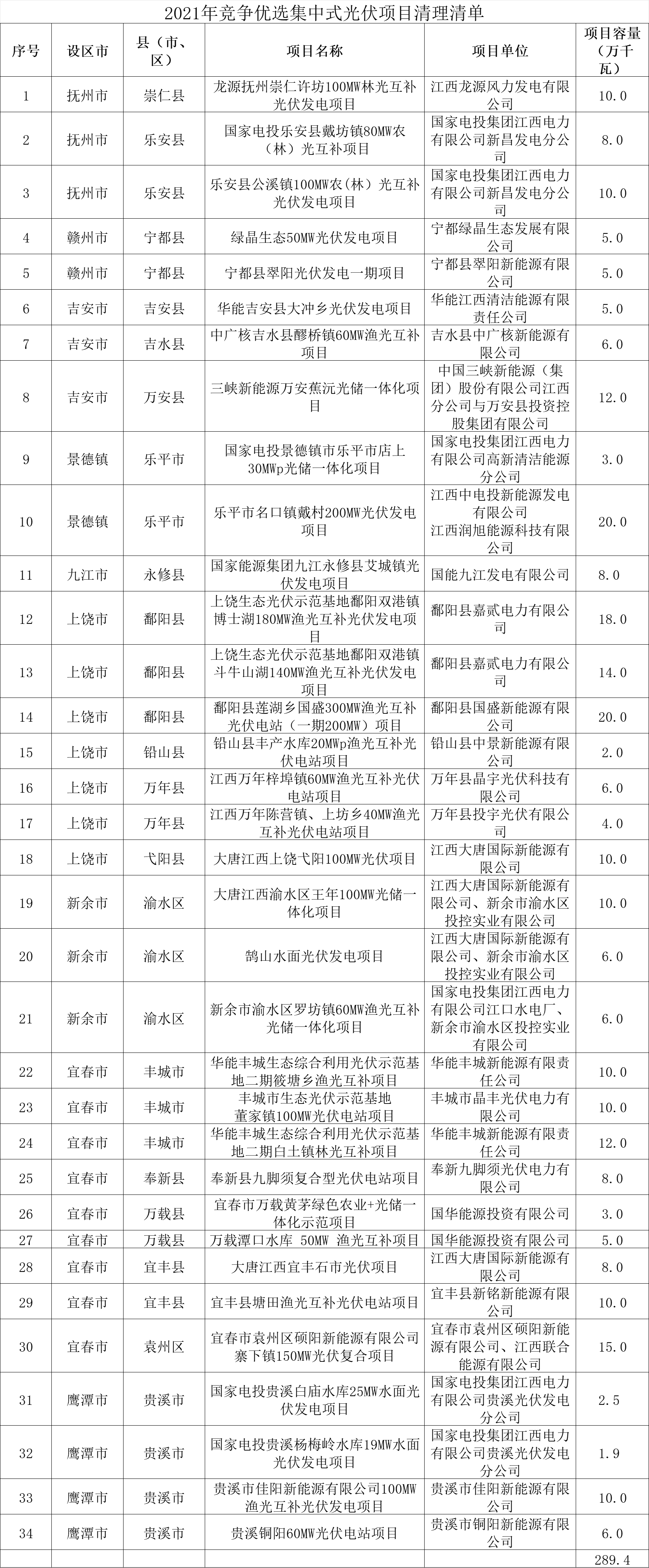 截至2023年9月30日,納入2021年競爭優(yōu)選方案的光伏項目中,有34個項目、裝機289.4萬千瓦未開工(詳見附件1),按照要求現取消上述項目建設規(guī)模,騰退相應電網消納空間。