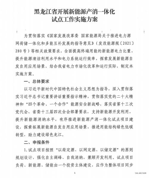 黑龍江啟動新能源產(chǎn)消一體化試點項目申報工作