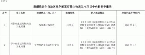 新疆維吾爾自治區(qū)發(fā)展和改革委員會關(guān)于擬申報中央補(bǔ)貼存量生物質(zhì)發(fā)電項目的公示
