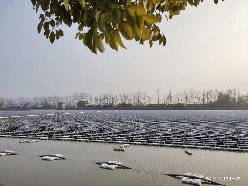 華銀益陽(yáng)北港長(zhǎng)河100兆瓦漁光互補(bǔ)光伏發(fā)電工程位于湖南省益陽(yáng)市沅江市泗湖山鎮(zhèn)北港長(zhǎng)河水域,水域面積約2200畝,水域岸線廠約8公里。本工程安裝光伏組件近28萬塊,直流側(cè)容量122兆瓦,共設(shè)32個(gè)光伏發(fā)電方陣,全部為浮體安裝的固定運(yùn)行方式。每個(gè)光伏發(fā)電方陣由箱逆變一體機(jī)逆變升壓至35千伏,經(jīng)4條集電線路送至新建的110千伏升壓站,通過1回路110千伏線路接入國(guó)家電網(wǎng)。
