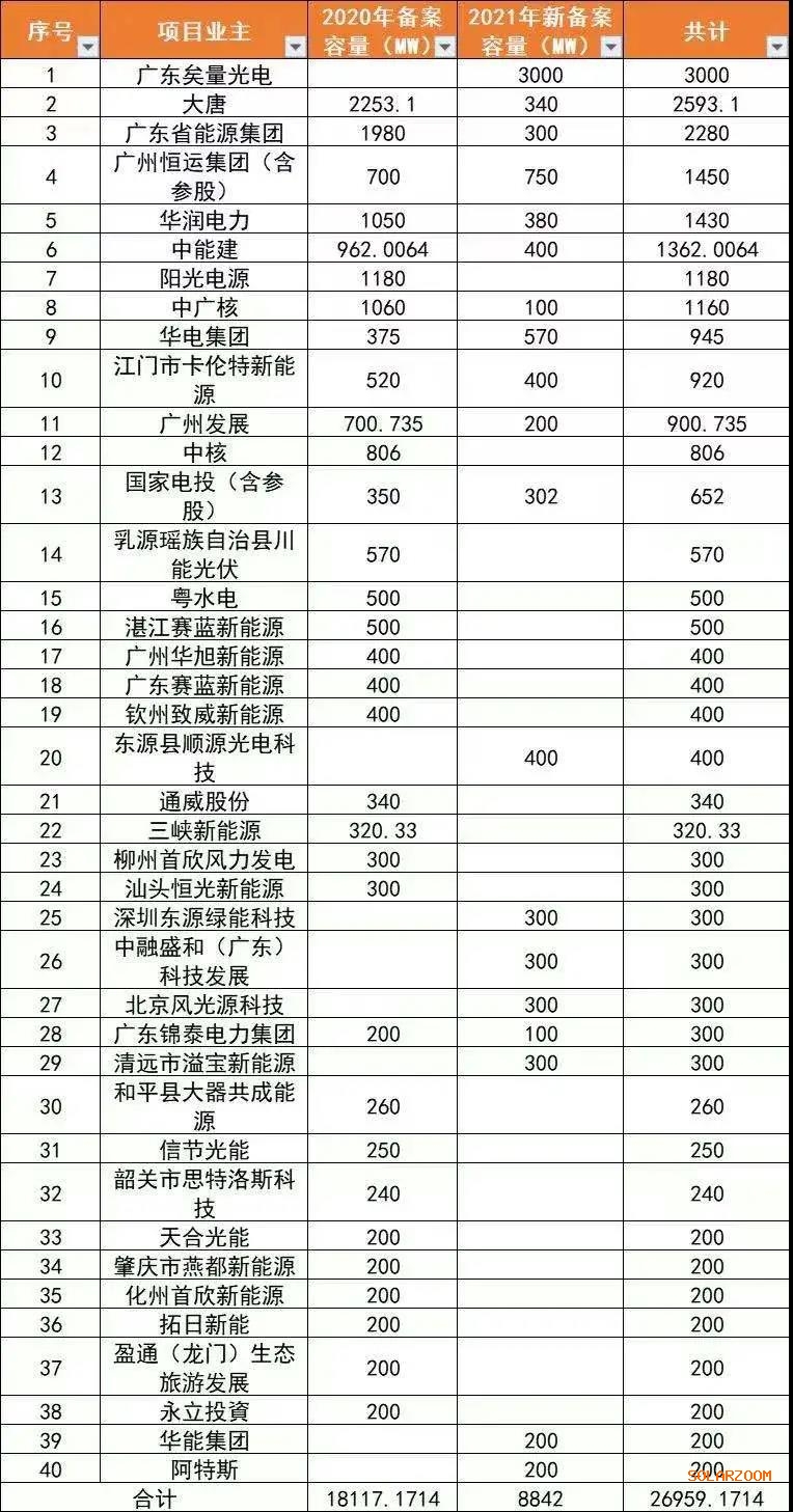 從上表可以看出,廣東能源集團(tuán)、中國(guó)能建廣東院、廣州發(fā)展等本地企業(yè)參與度也非常高,同時(shí)一些地方企業(yè)拿到的規(guī)模也非常可觀——廣東矣量光電股份有限公司更是一次性備案總建設(shè)規(guī)模3GW的10個(gè)光伏項(xiàng)目。