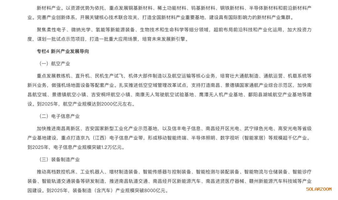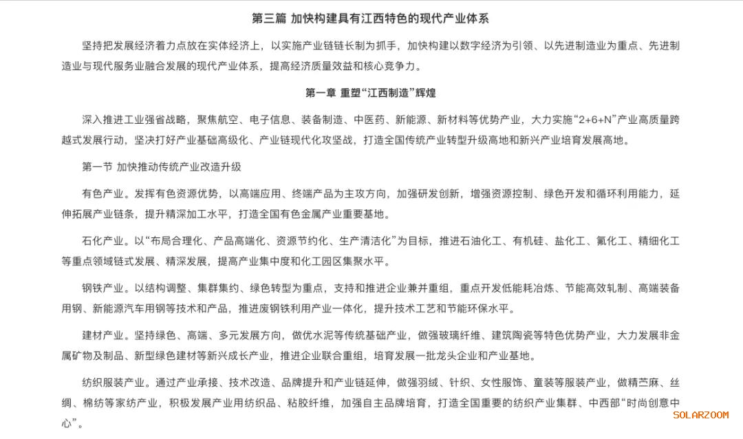 提升贛東北開放合作水平,提升“兩光一車”(光伏、光學、汽車)產業(yè)發(fā)展水平,打造全國光伏光學產業(yè)基地。加快贛西轉型升級步伐,支持新余推進鋼鐵、鋰電、硅灰石、光伏、電子信息等產業(yè)集群發(fā)展,打造中部地區(qū)新型工業(yè)強市、國家新能源科技示范城。