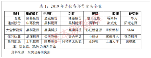 在組件環(huán)節(jié),2按產(chǎn)量排序,2019年前5大廠商分別為晶科能源、晶澳科技、天合光能、隆基股份、阿特斯太陽(yáng)能。