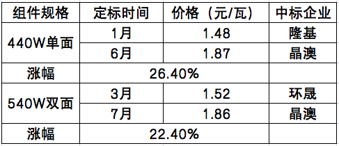 第三,盡管上半年招標(biāo)的組件大部分已經(jīng)定標(biāo),但據(jù)光伏們了解,其中不少訂單由于價格原因遲遲未進(jìn)入合同簽署階段,“即使簽了合同,很多項目也還沒有開始啟動供貨,這不僅僅是由于組件的問題,整個系統(tǒng)成本都上升了”,某組件企業(yè)銷售負(fù)責(zé)人告訴光伏們。