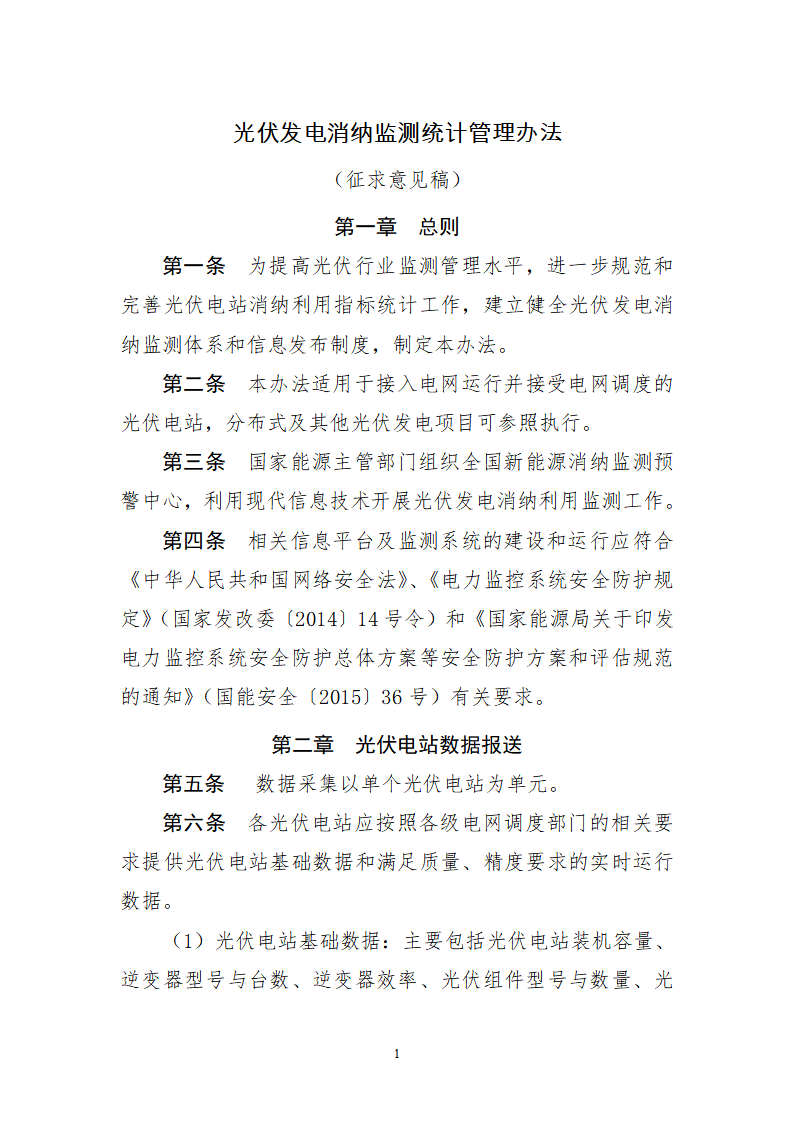 附件:光伏發(fā)電消納監(jiān)測(cè)統(tǒng)計(jì)管理辦法(征求意見稿)