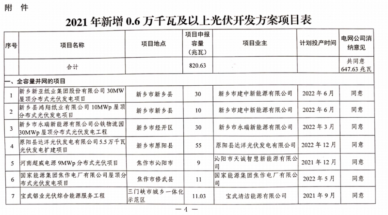 11月5日,河南省發(fā)改委下發(fā)《關于下達 2021年新增0.6萬千瓦及以上光伏項目開發(fā)方案的通知》。文件指出,對于不新增用地、利用固定建筑物及其附屬場所建設的光伏項目,不限申報規(guī)模!