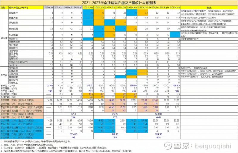 2022、2023年硅料產(chǎn)量預(yù)計分別為:83萬噸(76.73-89.35萬噸取中值)、126萬噸(123.05~129.3萬噸取中值,則2022、2023年硅料可支撐組件產(chǎn)量預(yù)計分別為:296GW、466GW,比2021年新增51%、137%,環(huán)比新增51%、57%,而中國光伏協(xié)會CPIA預(yù)測2022、2023年裝機中位值為205GW、240GW,乘以1.2容配比后對應(yīng)組件需求:245GW、290GW,由此未來硅料價格走勢不言而喻了。