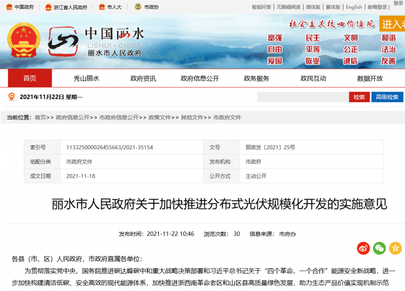 為貫徹落實(shí)黨中央、國務(wù)院推進(jìn)碳達(dá)峰碳中和重大戰(zhàn)略決策部署和習(xí)近平總書記關(guān)于“四個(gè)革命、一個(gè)合作”能源安全新戰(zhàn)略,進(jìn)一步加快構(gòu)建清潔低碳、安全高效的現(xiàn)代能源體系,加快推進(jìn)浙西南革命老區(qū)和山區(qū)縣高質(zhì)量綠色發(fā)展,助力生態(tài)產(chǎn)品價(jià)值實(shí)現(xiàn)機(jī)制示范區(qū)、城鄉(xiāng)共同富裕先行區(qū)建設(shè),根據(jù)國家和浙江省關(guān)于加快光伏應(yīng)用發(fā)展有關(guān)要求和整縣(市、區(qū))推進(jìn)分布式光伏規(guī)模化開發(fā)試點(diǎn)工作部署,現(xiàn)就推動(dòng)我市分布式光伏規(guī)?;_發(fā)提出如下意見。