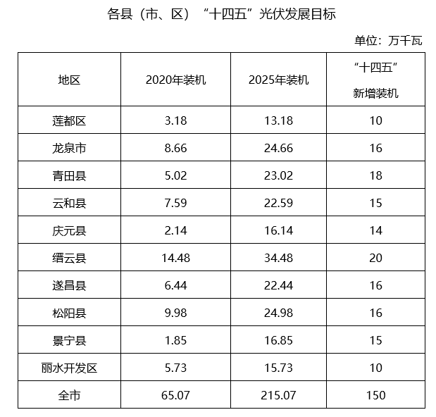 全面貫徹黨的十九大和十九屆二中、三中、四中、五中全會(huì)精神,認(rèn)真落實(shí)國家和省碳達(dá)峰碳中和工作部署,牢牢把握生態(tài)文明建設(shè)要求,加強(qiáng)統(tǒng)籌協(xié)調(diào),創(chuàng)新發(fā)展模式,加快調(diào)整優(yōu)化能源結(jié)構(gòu),以分布式光伏整縣(市、區(qū))規(guī)模化開發(fā)為抓手,全面實(shí)施“光伏+”工程,推動(dòng)綠色低碳能源產(chǎn)業(yè)高質(zhì)量發(fā)展,著力打造華東綠色能源基地。力爭“十四五”全市新增光伏發(fā)電150萬千瓦,其中市區(qū)(含蓮都區(qū)、麗水經(jīng)濟(jì)開發(fā)區(qū))新增光伏發(fā)電20萬千瓦。