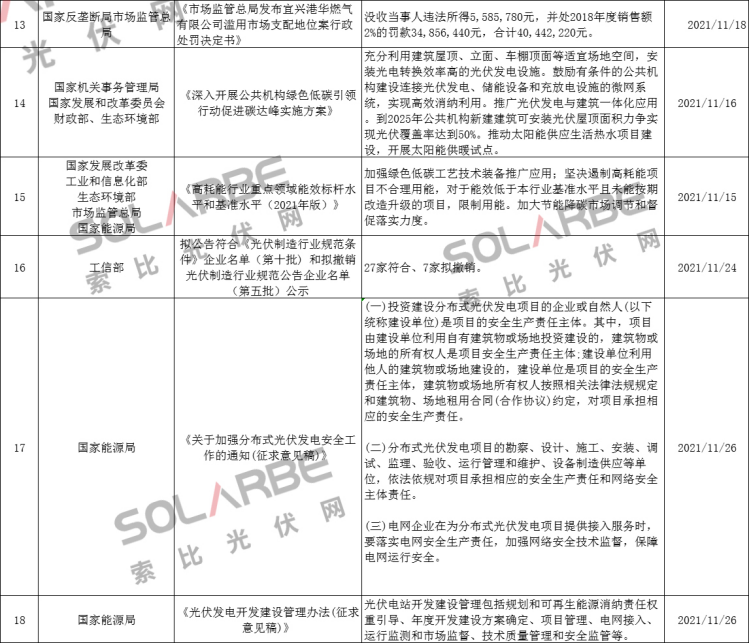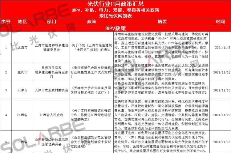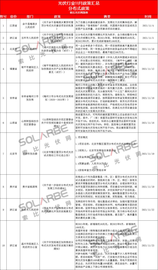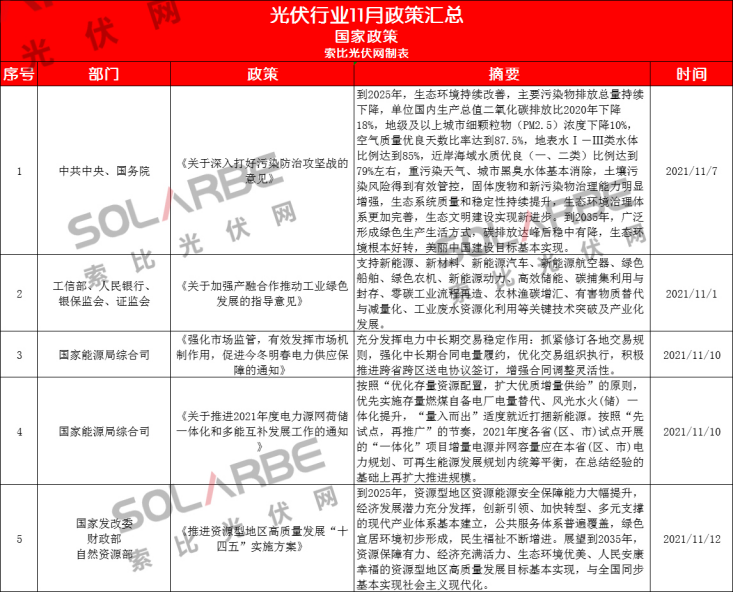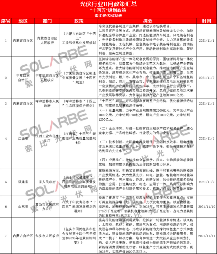 那么,11月份的光伏行業(yè)有哪些政策值得重點(diǎn)關(guān)注呢?下面來(lái)看索比光伏網(wǎng)的梳理。