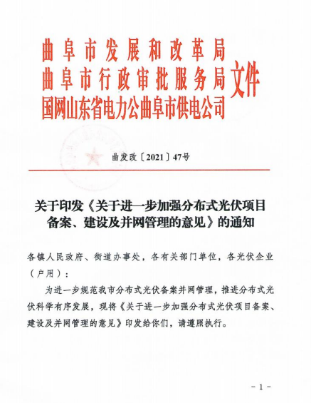 關于進一步加強分布式光伏項目備案、建設 及并網(wǎng)管理的意見