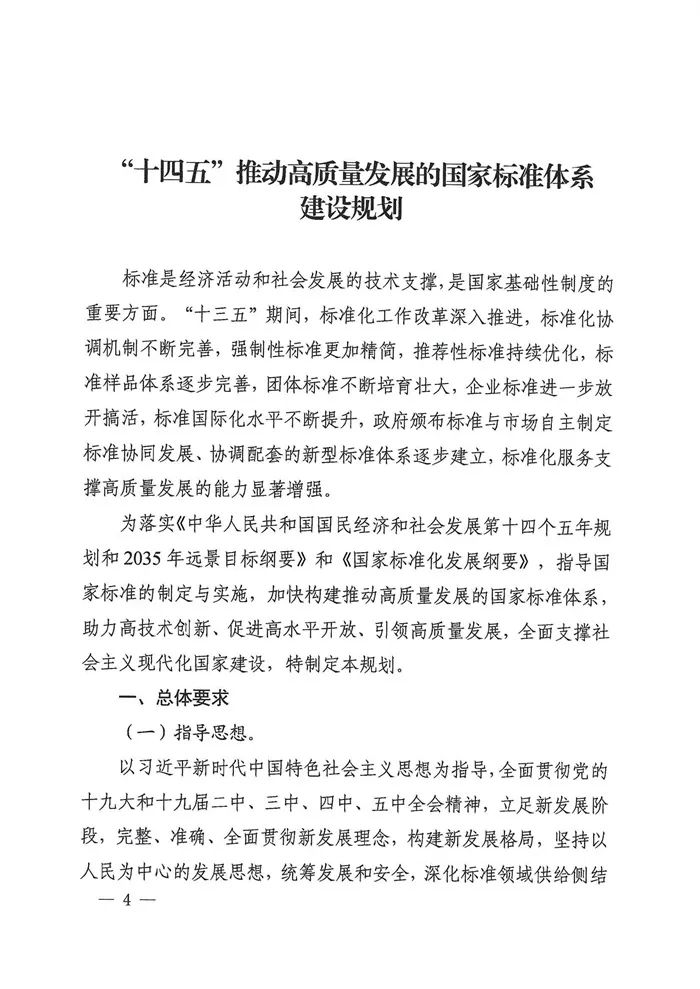 為貫徹落實(shí)《國家標(biāo)準(zhǔn)化發(fā)展綱要》,指導(dǎo)國家標(biāo)準(zhǔn)的制定與實(shí)施,加快構(gòu)建推動(dòng)高質(zhì)量發(fā)展的國家標(biāo)準(zhǔn)體系,國家標(biāo)準(zhǔn)化管理委員會(huì)會(huì)同有關(guān)部門組織編制了《“十四五”推動(dòng)高質(zhì)量發(fā)展的國家標(biāo)準(zhǔn)體系建設(shè)規(guī)劃》,現(xiàn)印發(fā)給你們,請按照執(zhí)行。