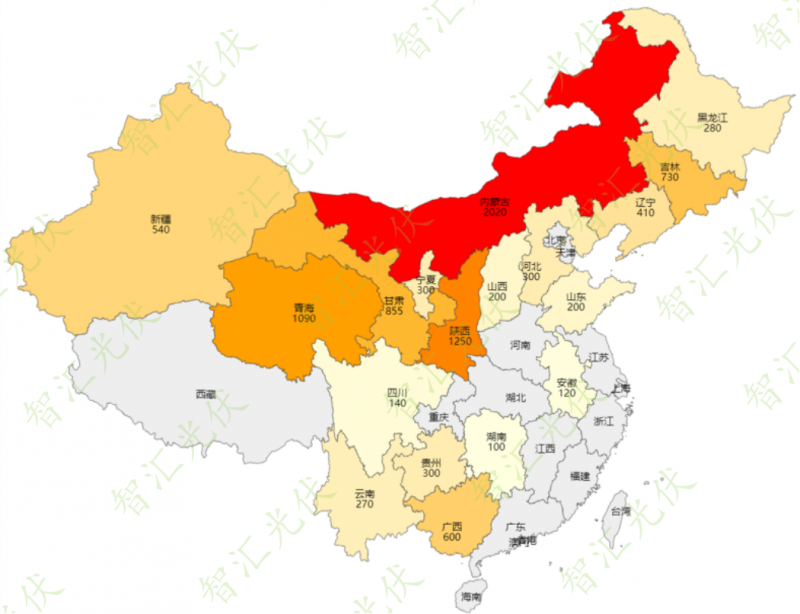 2021年11月24日,國家能源局、國家發(fā)改委印發(fā)的《第一批以沙漠、戈壁、荒漠地區(qū)為重點的大型風(fēng)電、光伏基地建設(shè)項目清單的通知》,涉及19省份,規(guī)??傆?7.05GW。各省具體的規(guī)模如下圖所示。