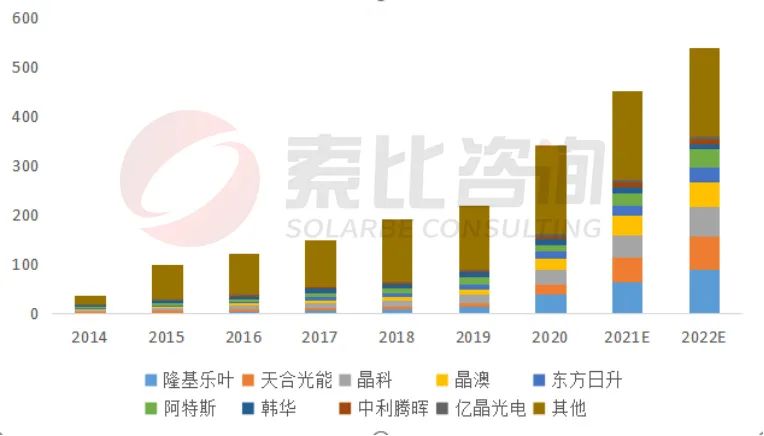 2022年將是產(chǎn)業(yè)鏈供需重新平衡的一年。曹宇表示,索比咨詢預(yù)計(jì)2022年全球硅料產(chǎn)能在300GW、單晶硅片產(chǎn)能在430GW、電池片產(chǎn)能360GW、組件產(chǎn)能390GW,硅片/電池/組件產(chǎn)能相對過剩,進(jìn)入替代期。