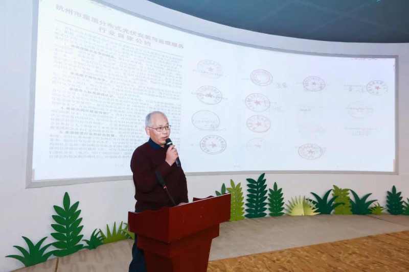2022年1月18日,全國首個整縣推進模式下的行業(yè)自律公約《杭州市屋頂分布式光伏安裝與運維服務行業(yè)自律公約》,由協(xié)會副會長、標技委副主任郭衛(wèi)東在杭州低碳科技館召開的“一心一意助力零碳 共創(chuàng)共享前行攻關(guān)”主題論壇上正式發(fā)布。