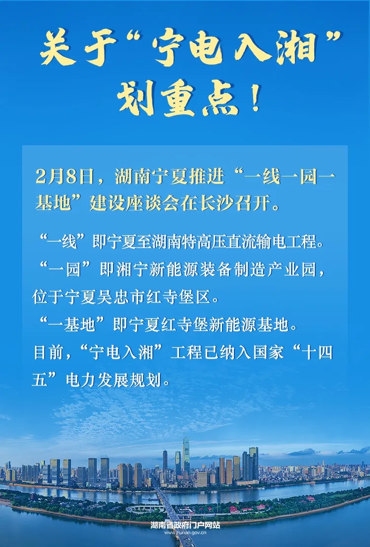 2月8日,湖南省政府與寧夏回族自治區(qū)政府在長沙舉行座談會(huì),共商加快推進(jìn)“一線一園一基地”建設(shè)。“一線”為寧夏至湖南特高壓直流輸電工程,“一園”為湘寧新能源裝備制造產(chǎn)業(yè)園,“一基地”為寧夏紅堡寺新能源基地。