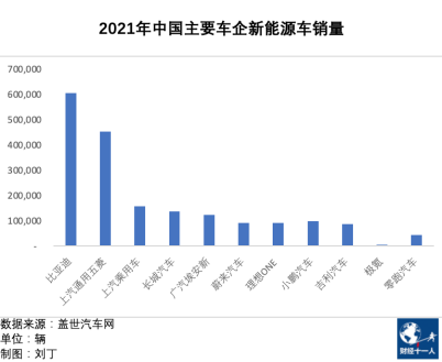 從2021年銷量來看(圖5),在比亞迪之后,上汽通用五菱雖然銷量規(guī)模大,但其主要是依靠低檔次的宏光MINI EV車型,與比亞迪不在同級。上汽乘用車則是依靠多生孩子打群架,單車型無一進入銷量前十,企業(yè)核心技術(shù)和競爭力與比亞迪相差甚遠。