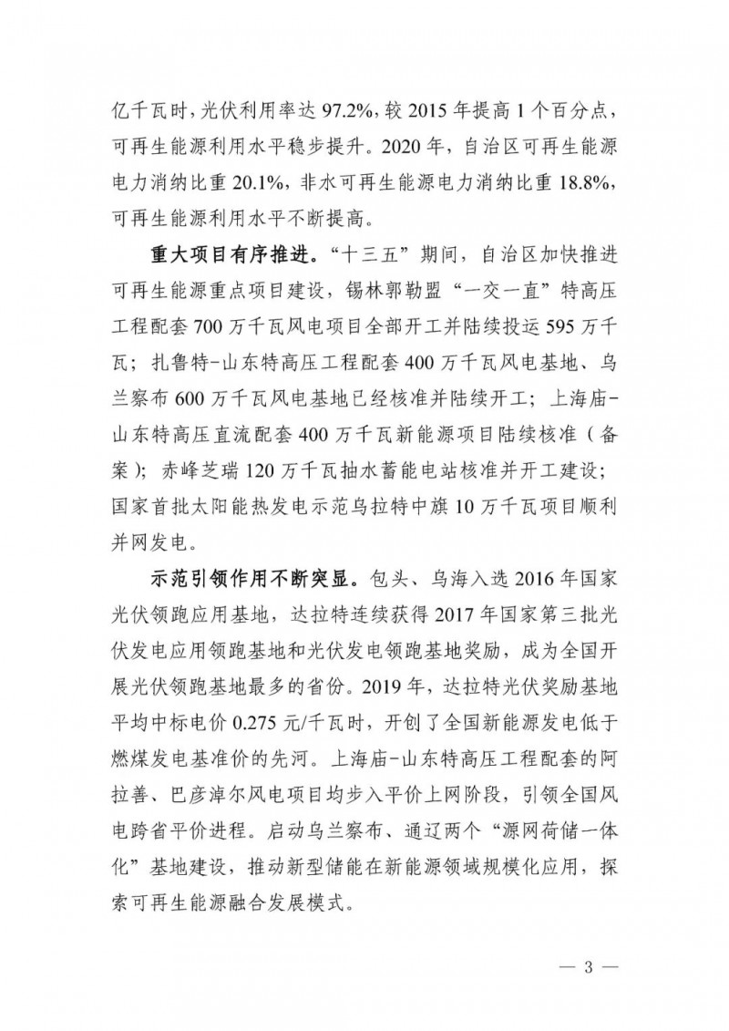 3月3日,內(nèi)蒙古自治區(qū)能源局網(wǎng)站公開發(fā)布了“內(nèi)蒙古自治區(qū)能源局關于印發(fā)《內(nèi)蒙古自治區(qū)“十四五”可再生能源發(fā)展規(guī)劃》的通知(內(nèi)能新能字〔2022〕103號)”,根據(jù)規(guī)劃,“十四五”時期,我區(qū)可再生能源主要發(fā)展目標如下: