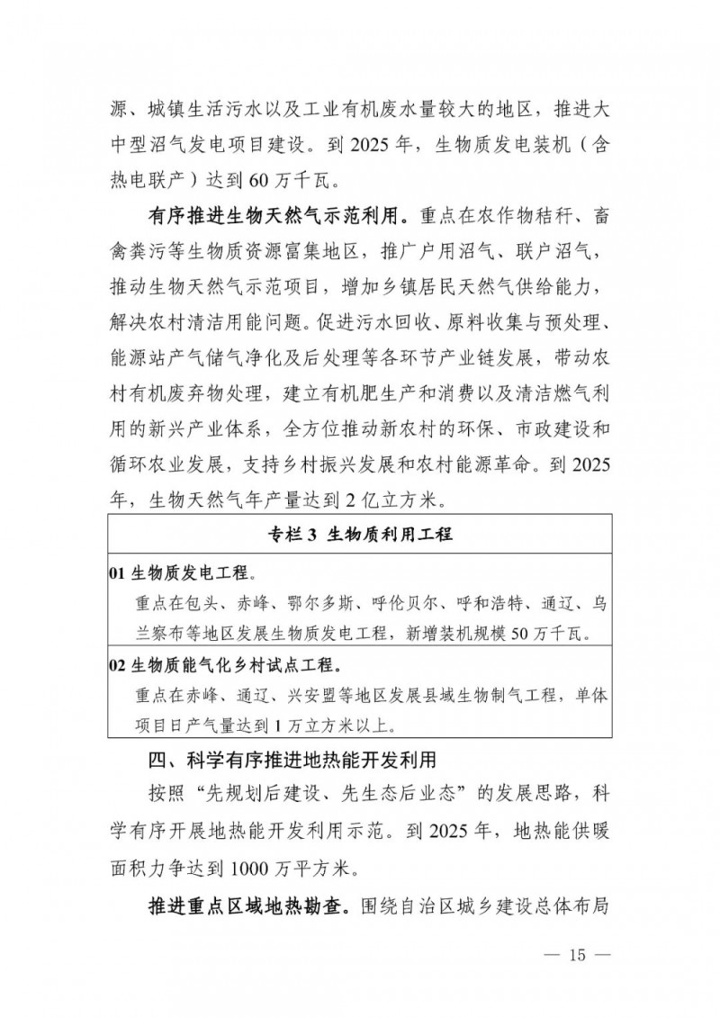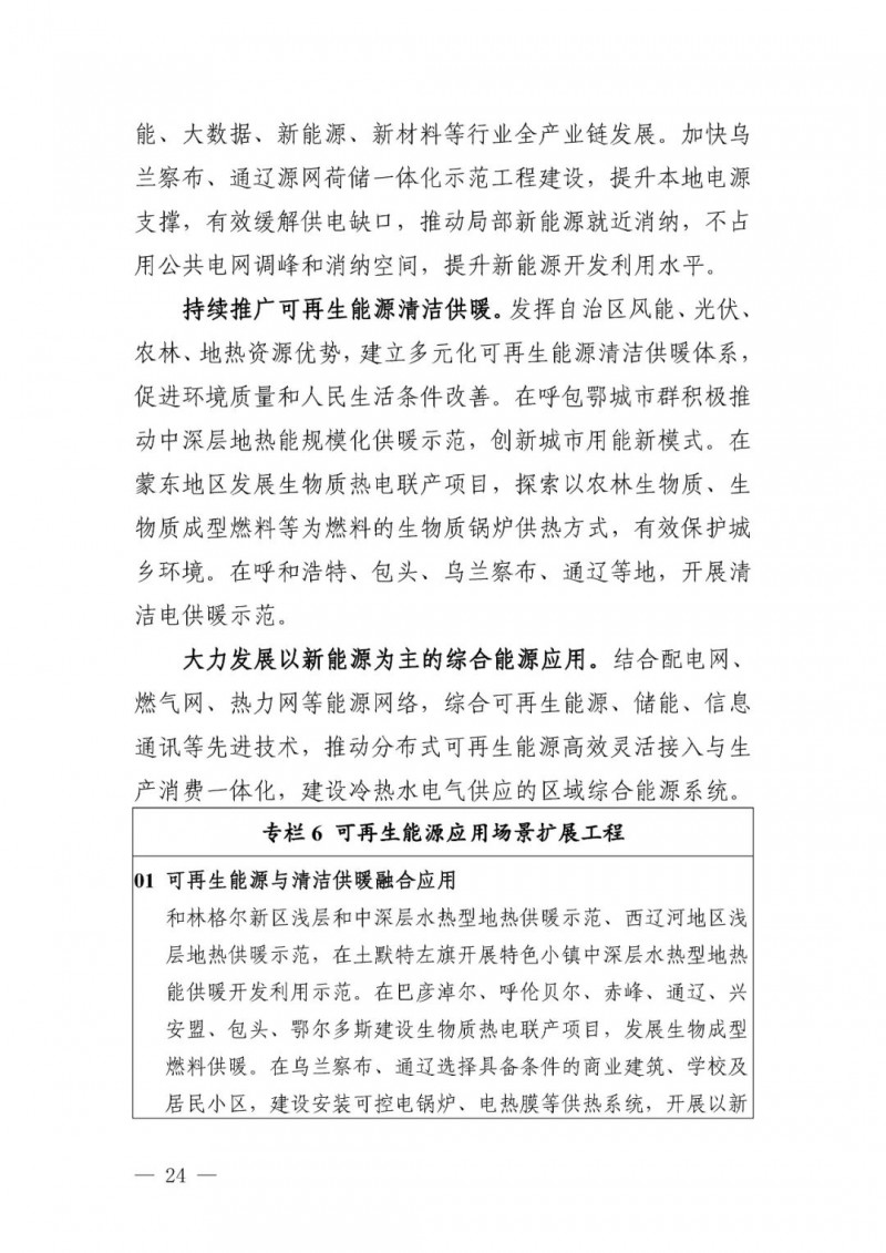 可再生能源供熱目標。自治區(qū)地熱能、生物質能、 太陽能供暖和新能源電力供暖利用規(guī)模顯著提升。全區(qū)可再生能源供暖面積達到 3600 萬平方米,“十四五”期間新增2500 萬平方米。