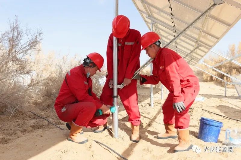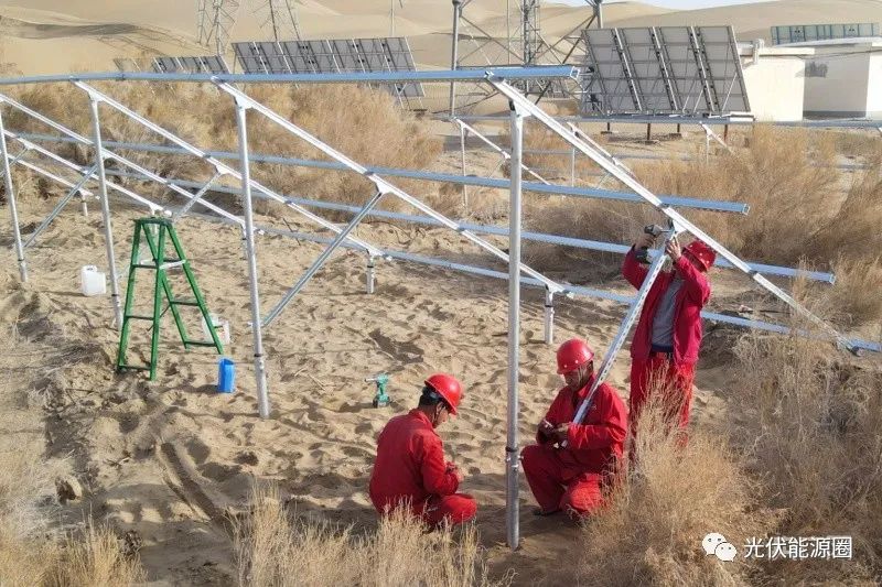 從1月18日人員入場平整場地開始,施工人員每天都自帶午餐加快施工進(jìn)度。3月初太陽能設(shè)備到場后,施工人員按照施工工序全面鋪開。截至目前,86個螺旋樁基礎(chǔ)已全部完成,安裝支架30個,安裝太陽能板4個。