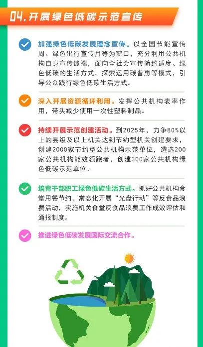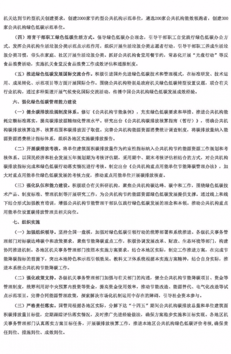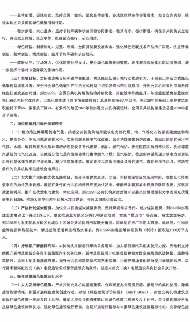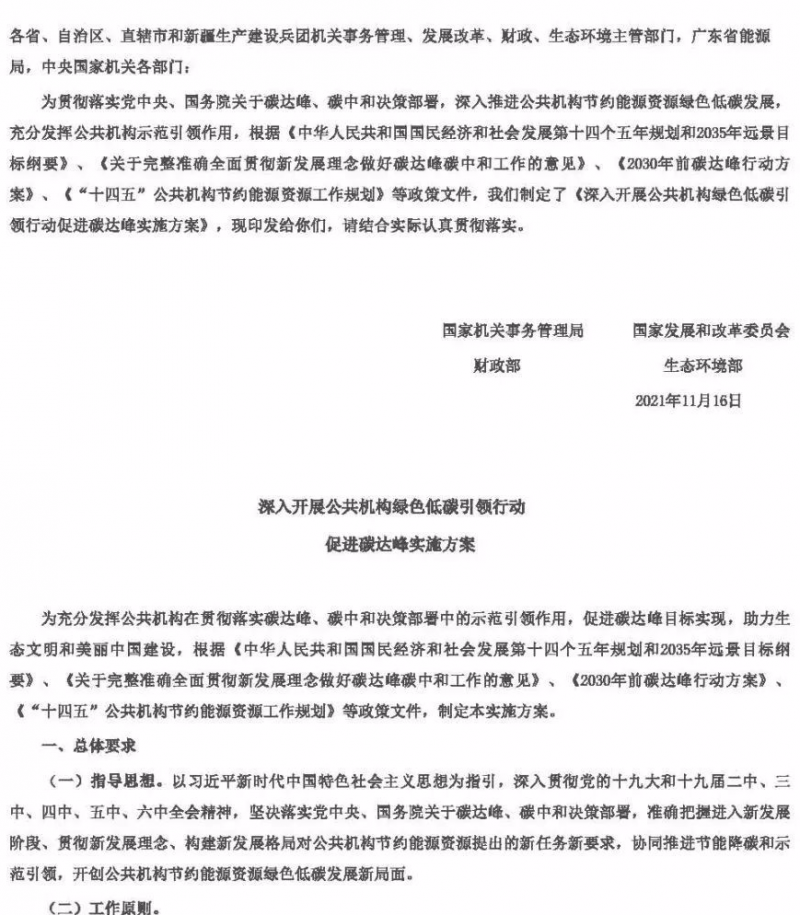 國家機關(guān)事務(wù)管理局、國家發(fā)改委、財政部、生態(tài)環(huán)境部發(fā)布關(guān)于印發(fā)深入開展公共機構(gòu)綠色低碳引領(lǐng)行動、促進碳達峰實施方案的通知。