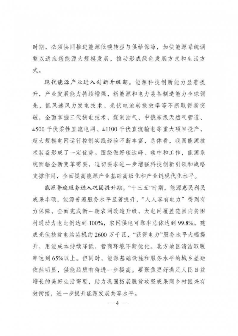 《“十四五”現(xiàn)代能源體系規(guī)劃》已經(jīng)國(guó)務(wù)院批復(fù)同意,現(xiàn)印發(fā)給你們,請(qǐng)認(rèn)真貫徹實(shí)施。