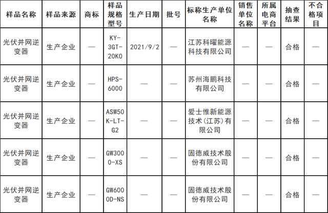 本次光伏逆變器產(chǎn)品監(jiān)督抽查在生產(chǎn)企業(yè)抽樣5批次,經(jīng)檢驗,合格5批次,合格率為100%。