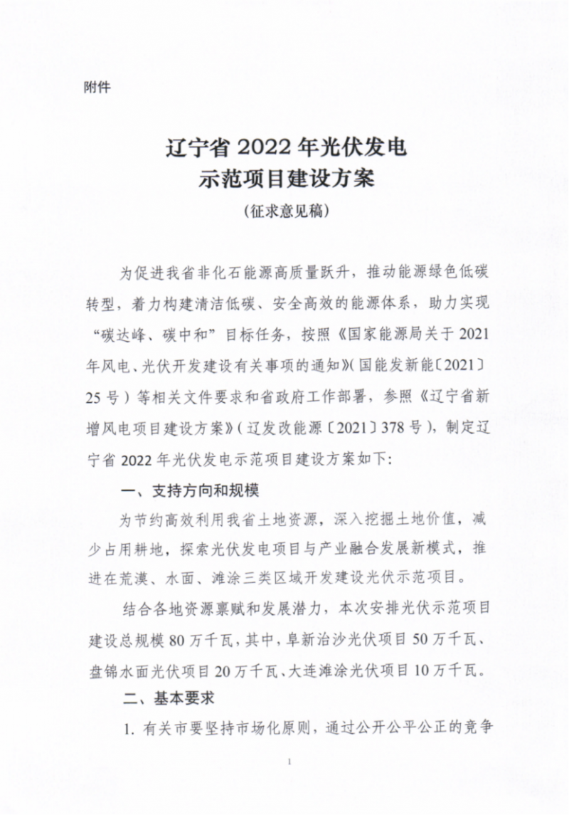 3月17日,遼寧省發(fā)展改革委關(guān)于征求《遼寧省2022年光伏發(fā)電示范項目建設(shè)方案》(征求意見稿)意見的函。
