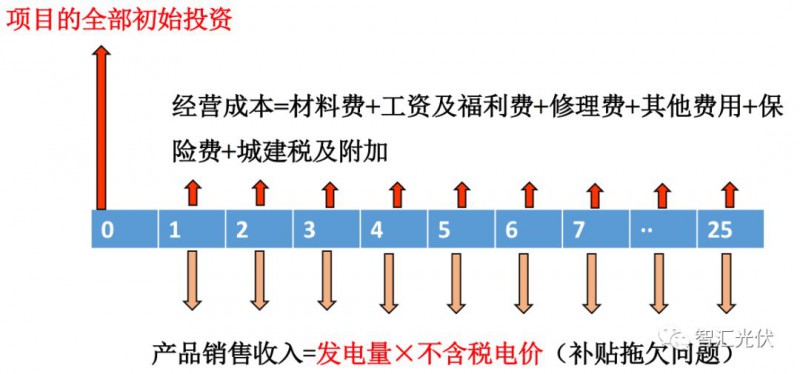 項(xiàng)目全部投資內(nèi)部收益率,即凈現(xiàn)金流為零時(shí)的折現(xiàn)值。項(xiàng)目的凈現(xiàn)金流表示如下圖所示。