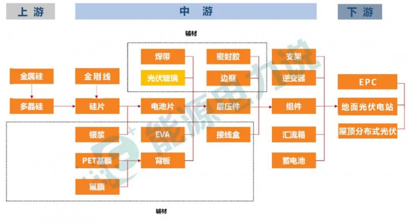 光伏產(chǎn)業(yè)以硅為主線,上中下游包括硅料、硅片、 電池、組件、電站等23個環(huán)節(jié)。