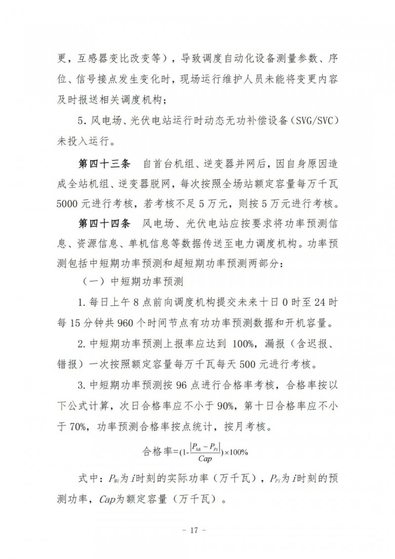 風電場、光伏電站執(zhí)行并網(wǎng)主體運行管理考核及風電場、光伏電站運行考核,其考核費用返還按當月所有風電場、光伏電站額定容量(含配套儲能)比例分別計算分配。