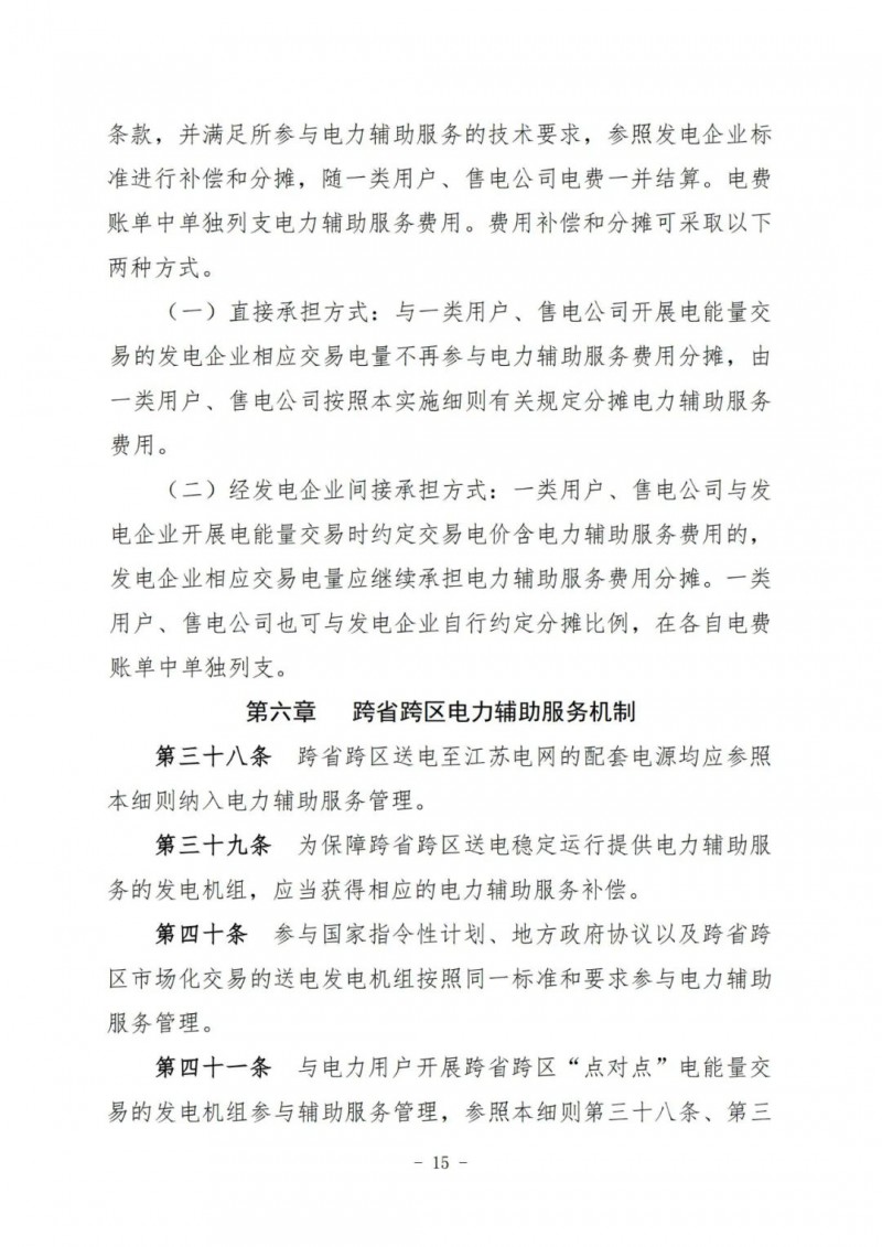 江蘇電力輔助服務管理實施細則(征求意見稿)
