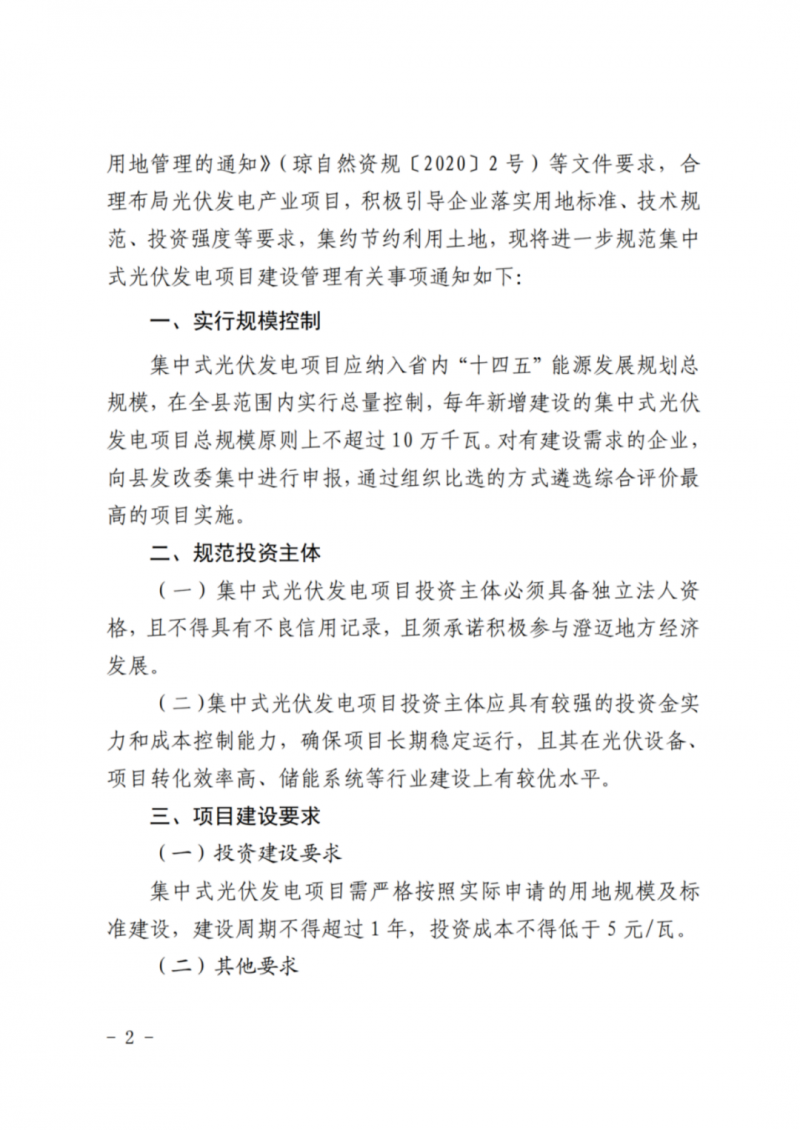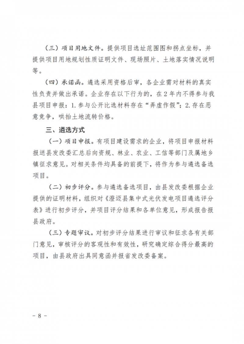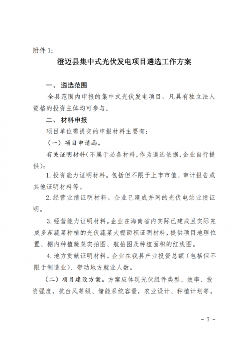 海南澄邁發(fā)布集中式光伏建設(shè)申報(bào)通知
