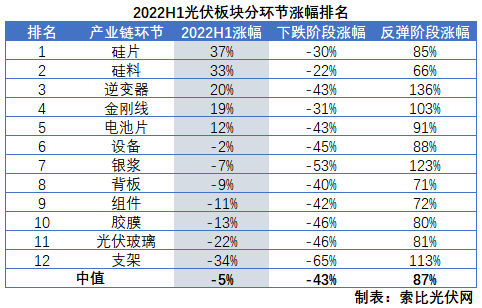 光伏板塊2022H1總結(jié):暴跌階段上游抗跌,暴漲階段逆變器成主線