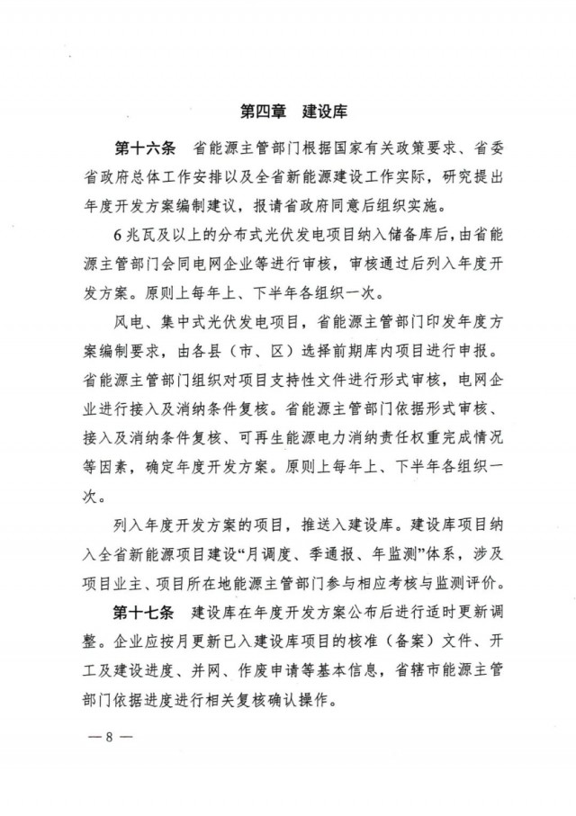 列入年度開發(fā)方案的項目,推送入建設(shè)庫。建設(shè)庫項目納入全省新能源項目建設(shè)“月調(diào)度、季通報、年監(jiān)測”體系,涉及項目業(yè)主、項目所在地能源主管部門參與相應(yīng)考核與監(jiān)測評價。