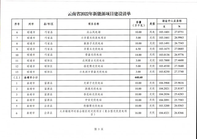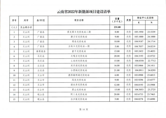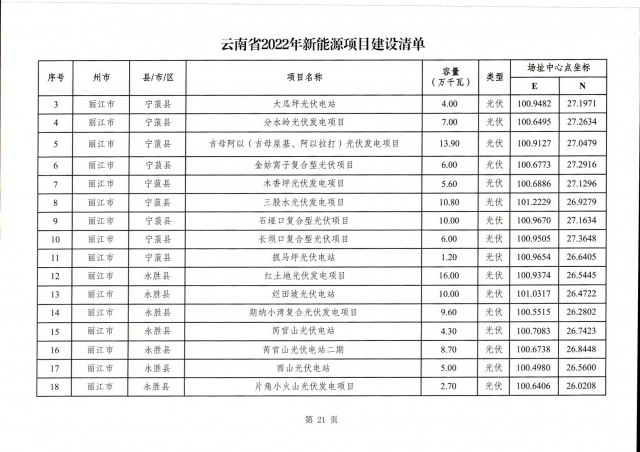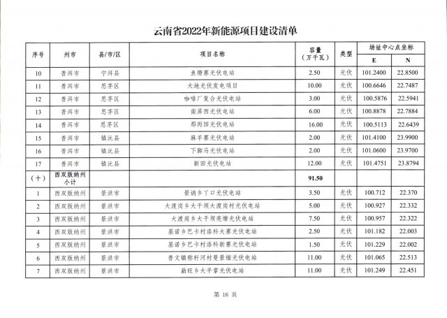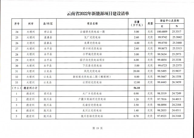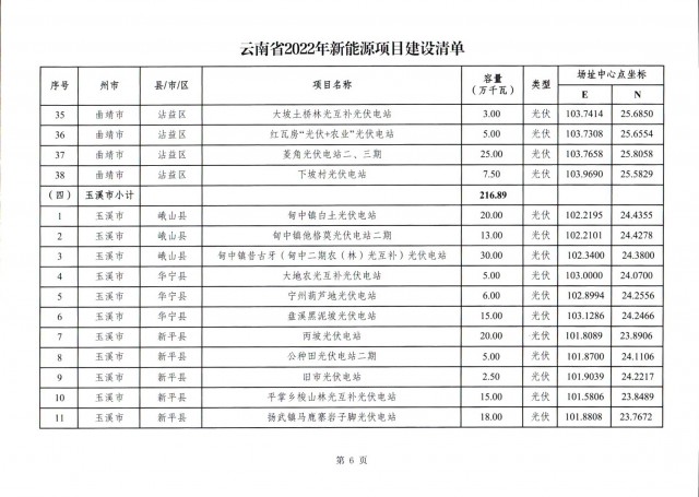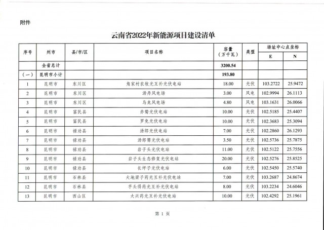 根據(jù)項(xiàng)目清單來(lái)看(附件查看清單),昆明市193.8萬(wàn)千瓦、昭通市129.9萬(wàn)千瓦、曲靖市440.6萬(wàn)千瓦、玉溪市216.89萬(wàn)千瓦、保山市194.8萬(wàn)千瓦、楚雄州556.46萬(wàn)千瓦、紅河州206.6萬(wàn)千瓦、文山州231萬(wàn)千瓦、普洱市101.5萬(wàn)千瓦、西雙版納州91.5萬(wàn)千瓦、大理州259.99萬(wàn)千瓦、德宏州56.1萬(wàn)千瓦、麗江市163.3萬(wàn)千瓦、怒江州87.1萬(wàn)千瓦、臨滄市271萬(wàn)千瓦。