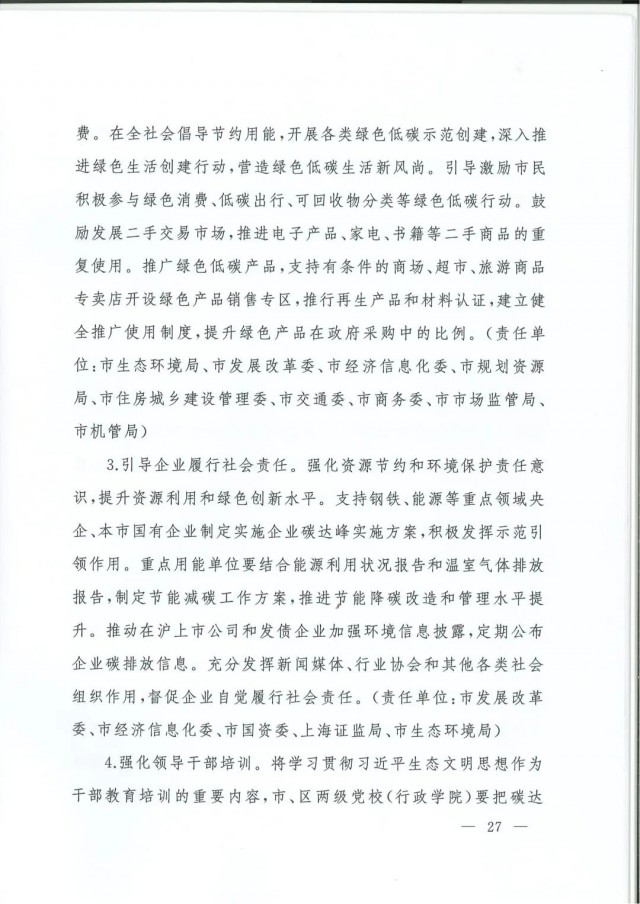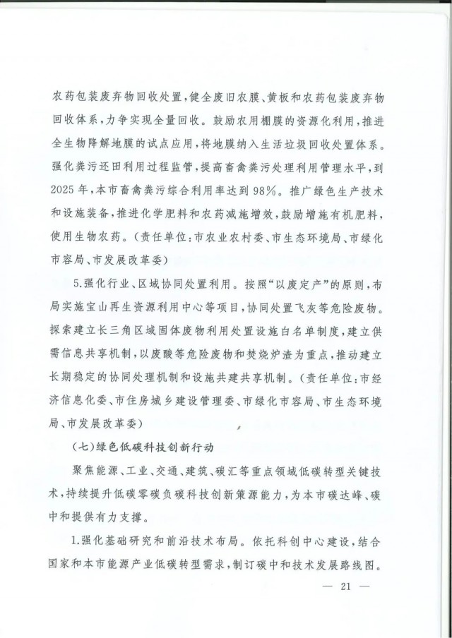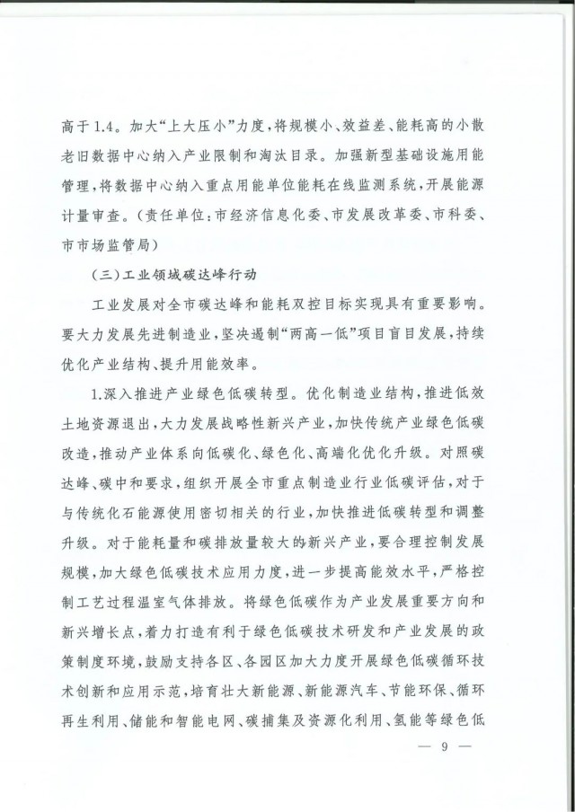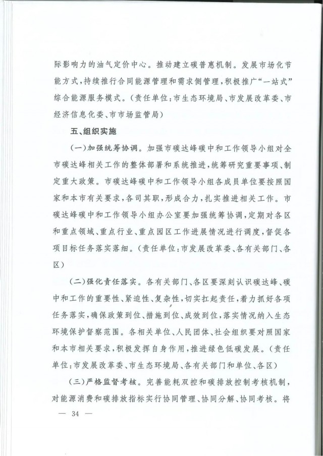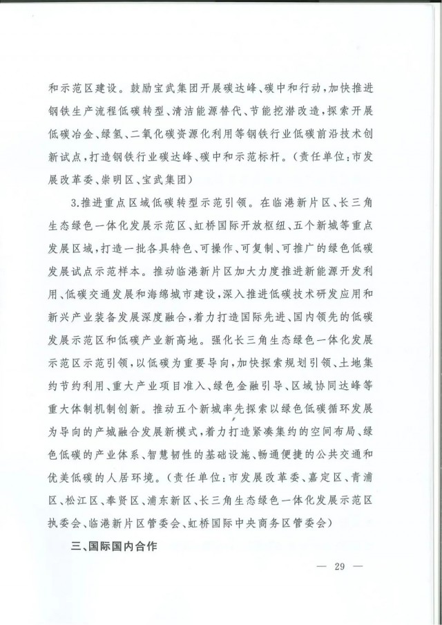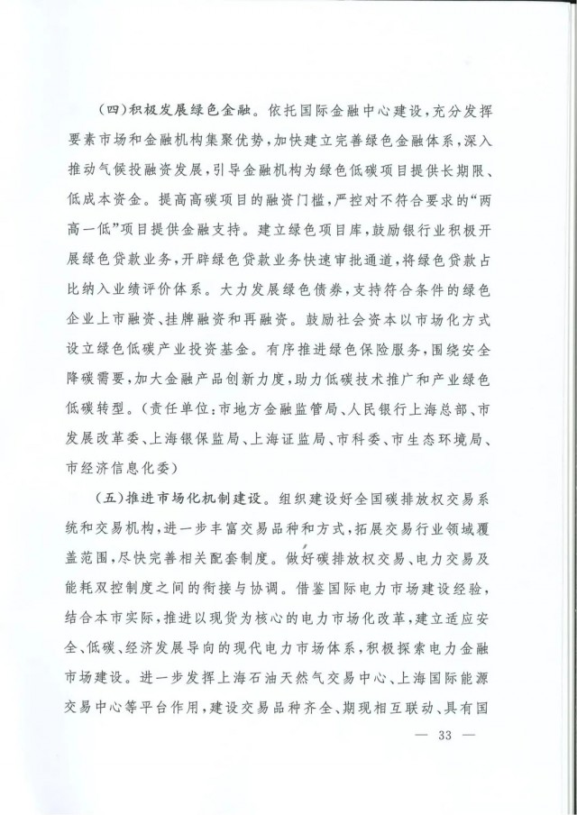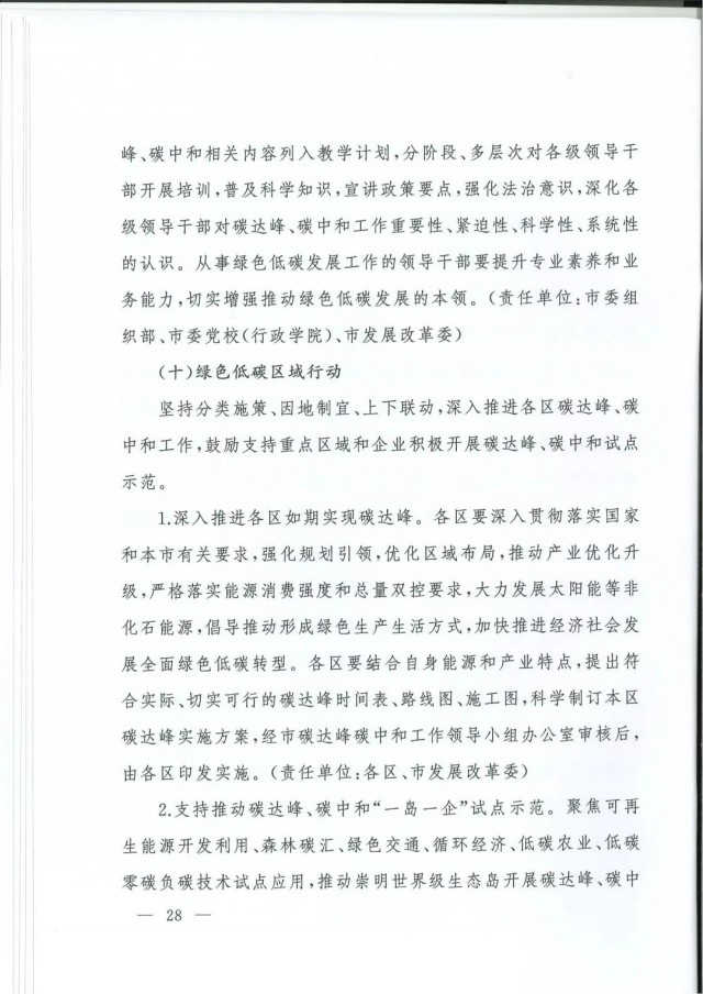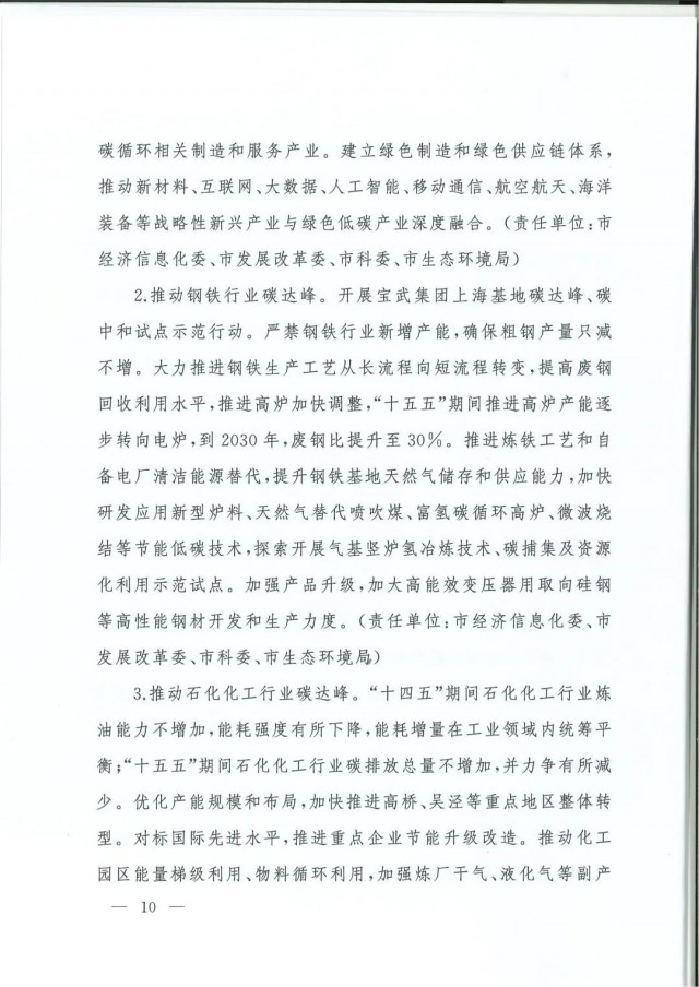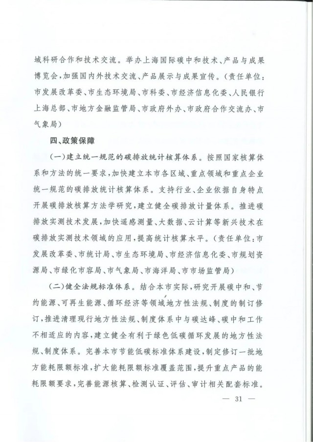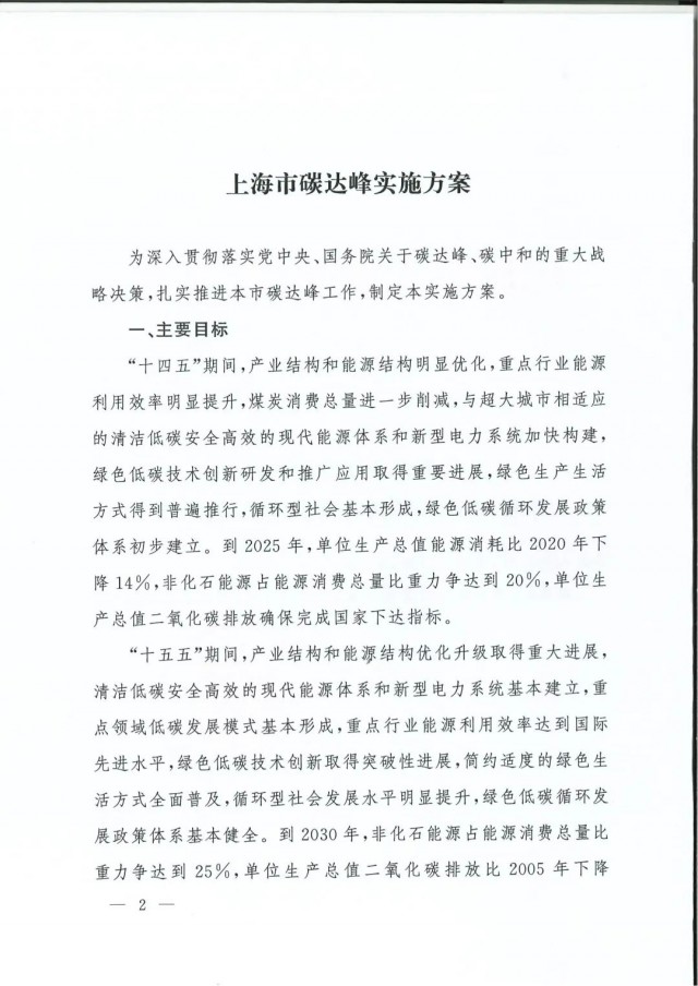 近日,上海市人民政府辦公廳印發(fā)了《上海市碳達(dá)峰實(shí)施方案》?!斗桨浮访鞔_主要目標(biāo):到2025年,單位生產(chǎn)總值二氧化碳排放確保完成國家下達(dá)指標(biāo)。到2030年單位生產(chǎn)總值二氧化碳排放比2005年下降70%,確保2030年前實(shí)現(xiàn)碳達(dá)峰。并計劃組織實(shí)施“碳達(dá)峰十大行動”,包括能源綠色低碳轉(zhuǎn)型行動、節(jié)能降碳增效行動、工業(yè)/城鄉(xiāng)建設(shè)/交通領(lǐng)域綠色低碳行動、循環(huán)經(jīng)濟(jì)助力降碳行動、綠色低碳科技創(chuàng)新行動、碳匯能力鞏固提升行動、綠色低碳全民行動、綠色低碳區(qū)域行動。