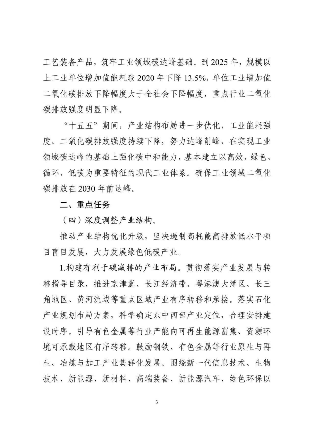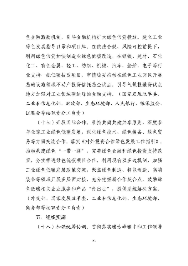 《工業(yè)領(lǐng)域碳達(dá)峰實(shí)施方案》已經(jīng)碳達(dá)峰碳中和工作領(lǐng)導(dǎo)小組審議通過,現(xiàn)印發(fā)給你們,請(qǐng)認(rèn)真貫徹落實(shí)。