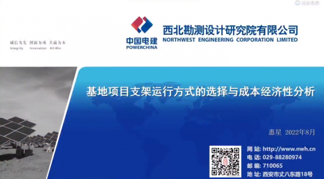 西北勘測設(shè)計(jì)研究院有限公司新能源工程院總工程師惠星作基地項(xiàng)目支架運(yùn)行方式的選擇與成本經(jīng)濟(jì)性分析。支架選擇與方案設(shè)計(jì)需要綜合考慮光伏電站所處區(qū)域位置、氣候、地貌地形等環(huán)境因素,同時(shí)還要考慮發(fā)電小時(shí)數(shù)、系統(tǒng)效率、并網(wǎng)情況等,惠星總工程師對(duì)各種情況下的光伏支架選擇與成本經(jīng)濟(jì)性分析進(jìn)行了深入分析。