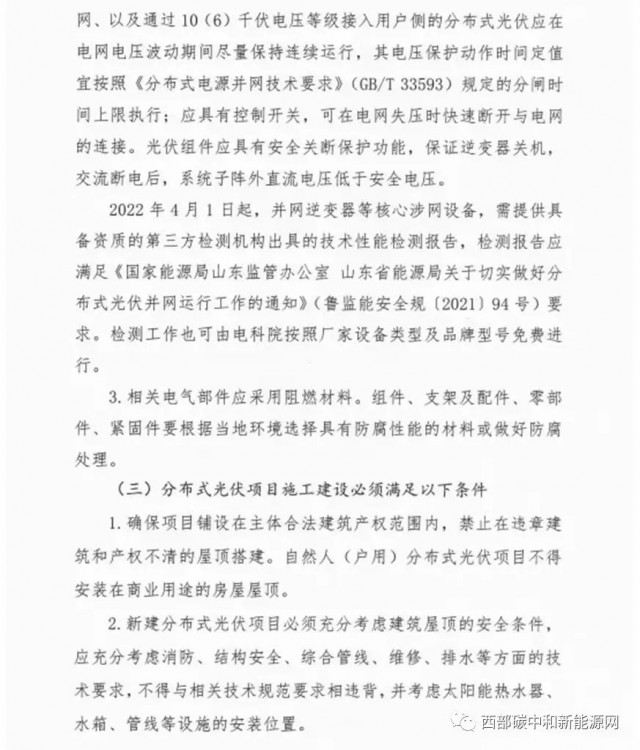 山東省濟(jì)南市平陰縣發(fā)改局印發(fā)《關(guān)于進(jìn)一步加強(qiáng)分布式光伏項(xiàng)目備案、建設(shè)及并網(wǎng)管理的意見》,文件提出分布式光伏應(yīng)就地就近消納。原創(chuàng)上各類光伏總計(jì)開發(fā)規(guī)模不應(yīng)超過本區(qū)域全年最大用電負(fù)荷60%,避免向220千伏及以上電網(wǎng)反送電。根據(jù)就地就近消納要求,原則上分布式光伏電力在接入電壓等級(jí)及以下電網(wǎng)范圍內(nèi)消納。
